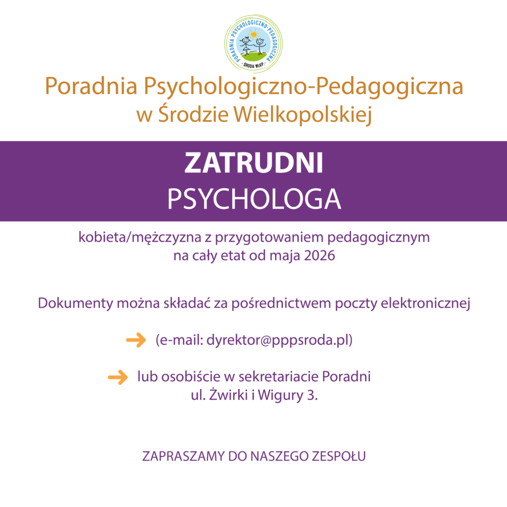 Poradnia Psychologiczno-Pedagogiczna poszukuje psychologa (K/M) do współpracy.